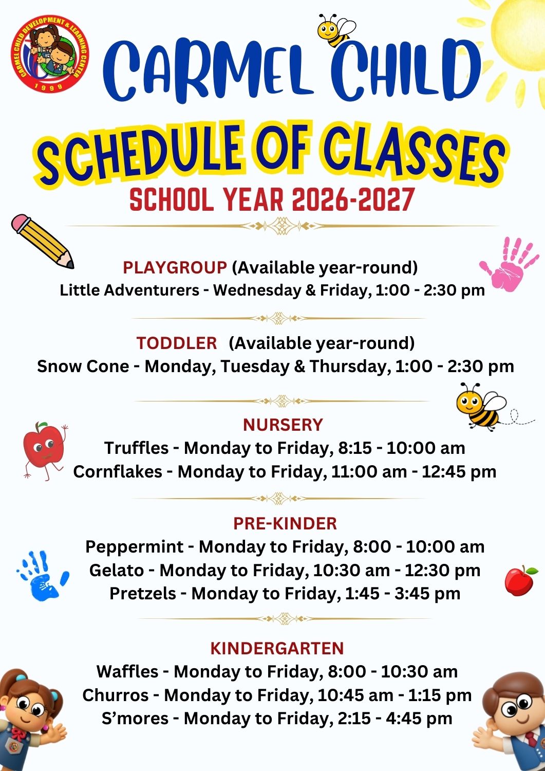 Morning and afternoon sessions available for all programs