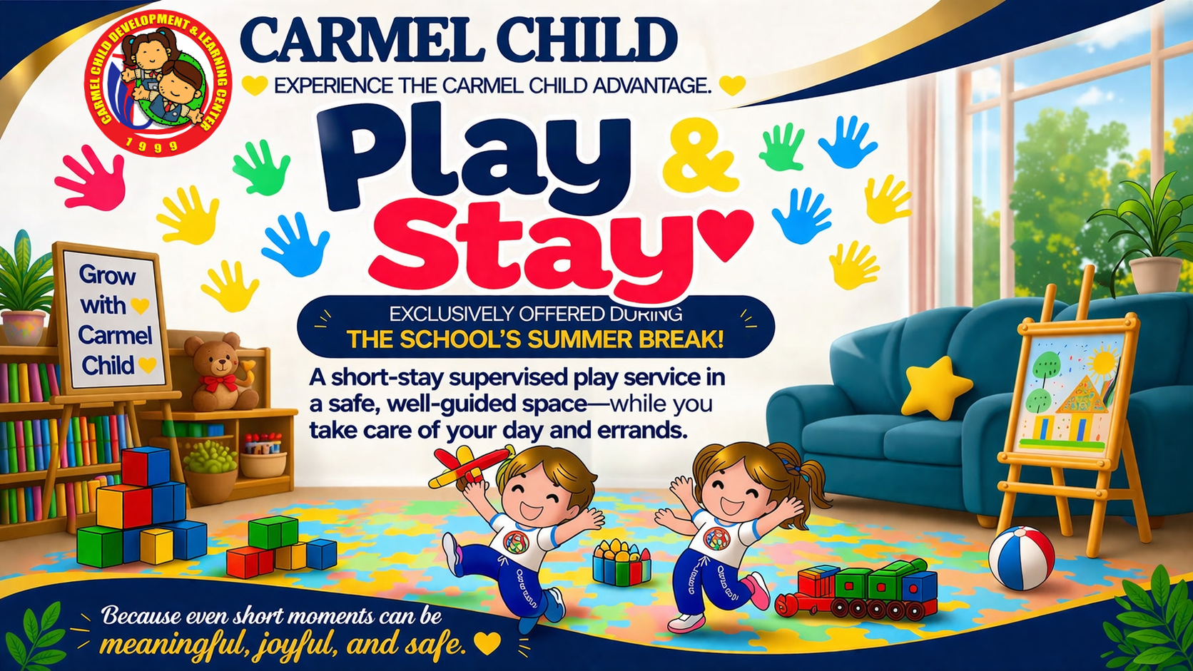 A Carmel Child program built around purposeful play, routines, and caring supervision - so children can learn, explore, and feel at home in a space designed for their age. See the graphics below for schedules, inclusions, and how to join.